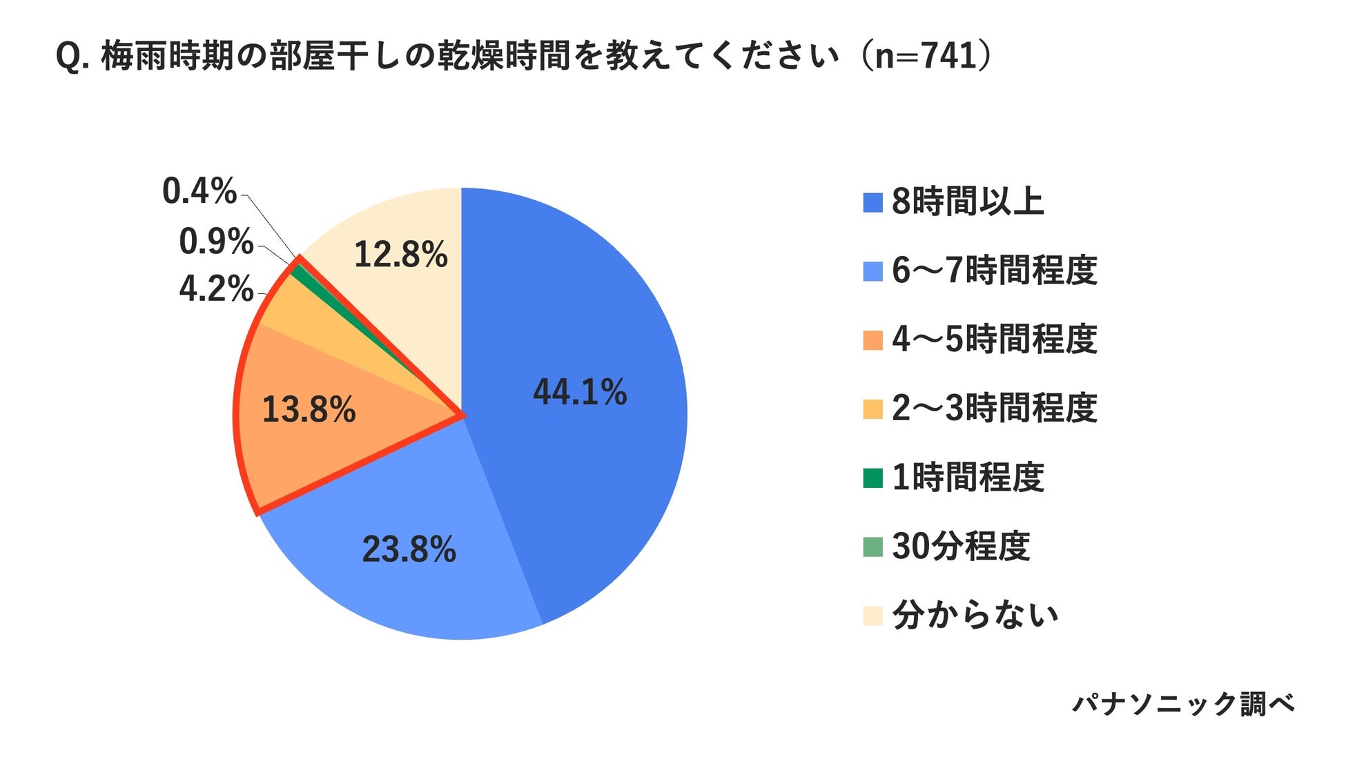 ・梅雨の部屋干し時間、「8時間以上」が44.1%で最多、続いて「6〜7時間程度」が23.8%