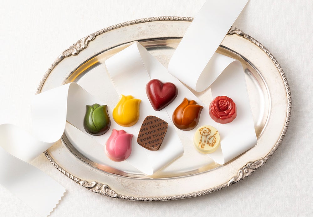 チューリップローズ ショコラカシス 4個入 プレシャスボックス、チューリップローズ 8個入 ティータイム缶、ボンボンショコラ フルーツコレクション 4個入、ボンボンショコラ ナッツコレクション 4個入