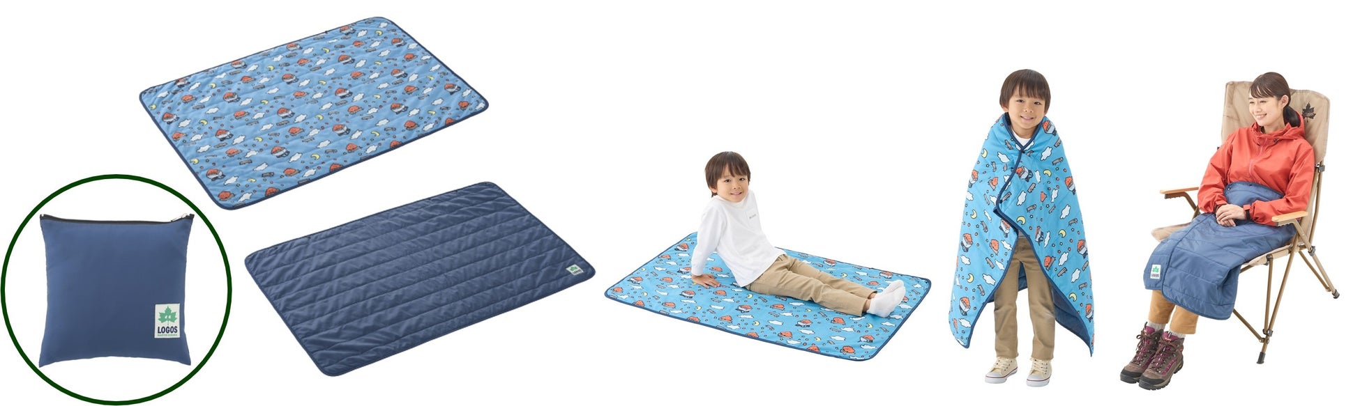 「ポケットケープ(ロゴスのえほん・火くん)」は、撥水生地とフリース風生地のリバーシブルで、シーンに合わせて使える中綿入りケープです。腰巻、シート、ひざ掛けのほか、授乳中や赤ちゃんのおむつ替えなどにも便利です。クッション型収納袋付きで収納時はクッションとしても使えます。