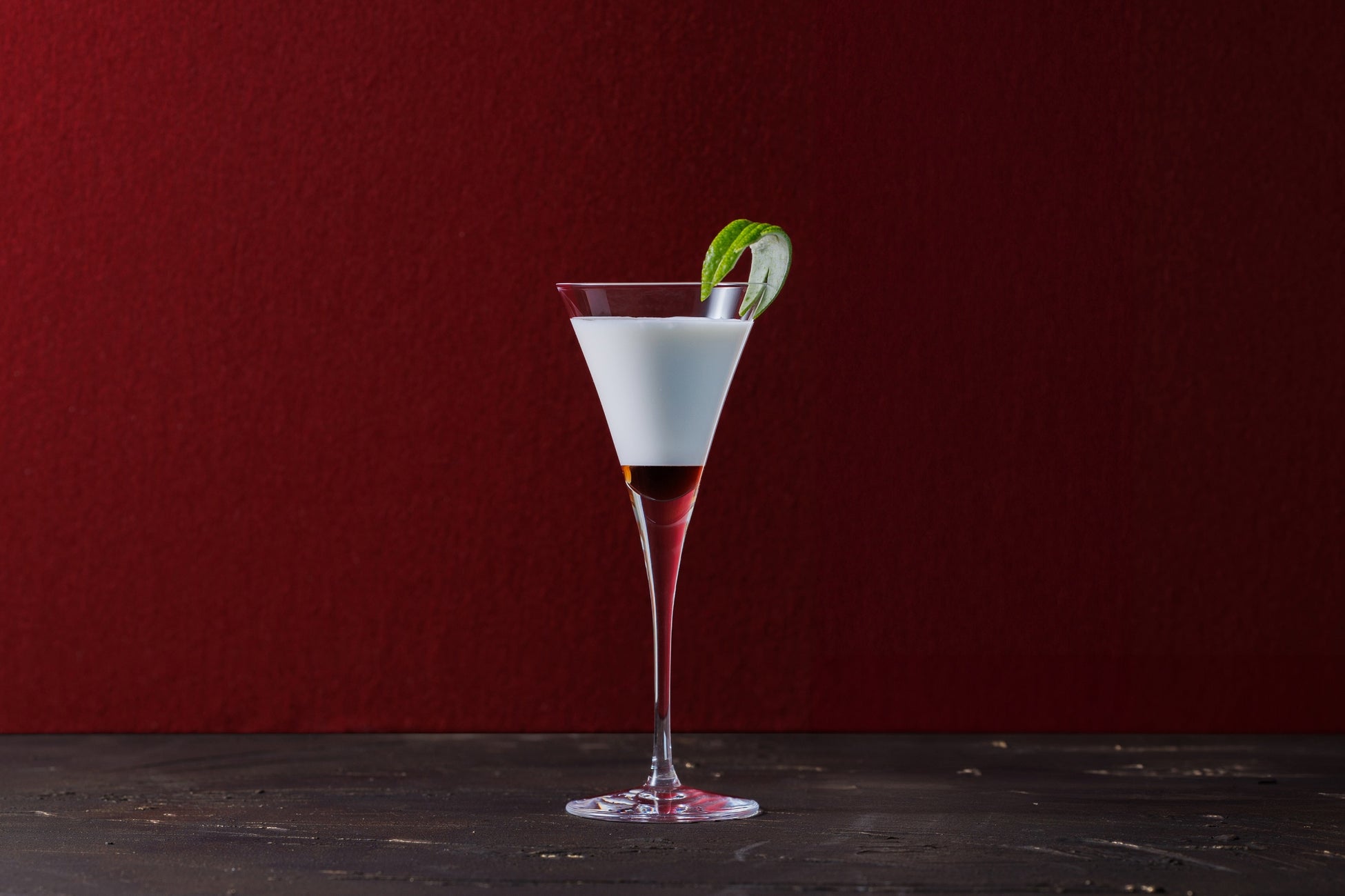 これまでにない作り方や飲み方で、カクテルのムーブメントを巻き起こしたいという想いを込め、「新風」と命名。ベースの焼酎「うかぜ」に「京都ウイスキー西陣織黒帯」を加えることで焼酎とジャパニーズ・ウイスキーの競演を実現し、新たな風が吹き込む様子をライムピールで演出しています。また、味の変化を楽しむために、バニラシロップをスポイトでお好みの量を入れる“最後の仕上げを飲み手に委ねる”体験スタイルも、斬新なアプローチです。和をベースにした新たなスイーツカクテルをご堪能いただけます。