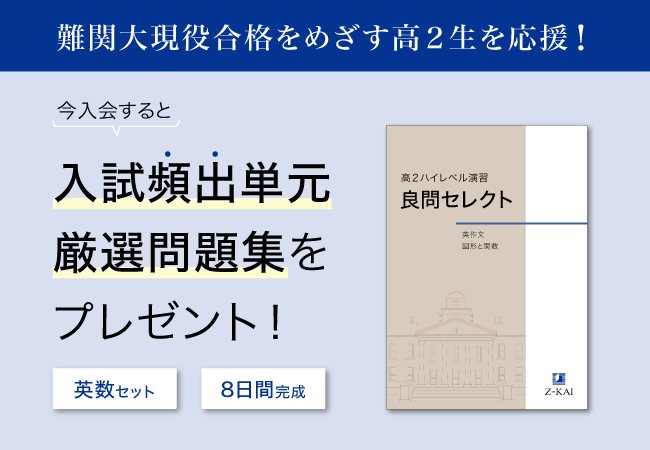 【Z会の通信教育】7/31までにお申し込みの高2生の方に、英数ハイレベル問題集「良問セレクト」をプレゼント!