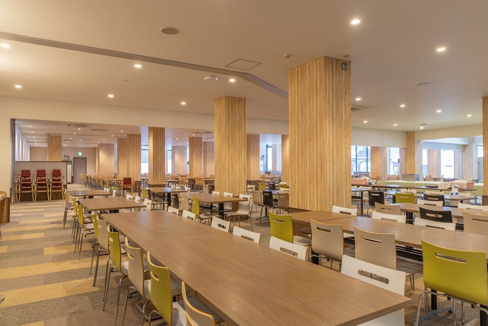 2014年以来11年ぶりにリゾートセンター内のレストラン「ON&OFF」を全面改装し、床面積を約2倍の約790㎡へ拡大、座席数も従来の290席から535席へと大幅に増席しました。大きなガラス窓からファミリーコースを一望できる開放的な空間に加え、くつろげる小上がりの予約席も新たに登場しました。食事から休憩まで、小さなお子様とご一緒に、快適にスキー・スノーボードをお楽しみいただけます。