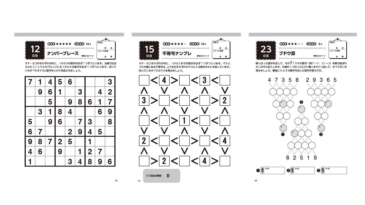 脳科学者監修の脳活パズルがたっぷり200日分。認知機能の低下予防に最適な計算・数字パズルを厳選セレクトしました。