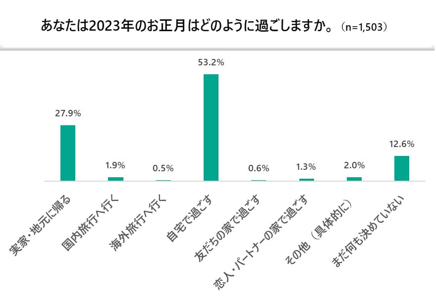 ●2023年のお正月はどうする?「自宅で過ごす」人は5割 「実家・地元に帰る」人は3割