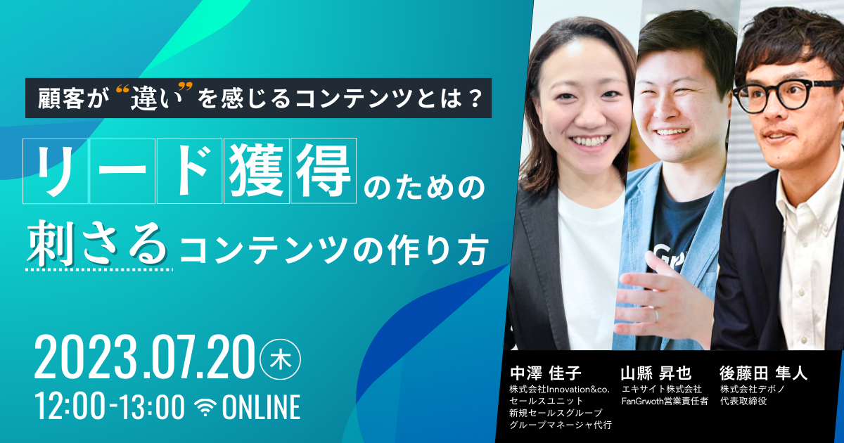 顧客が"違い"を感じるコンテンツとは?リード獲得のための刺さるコンテンツの作り方をテーマに7月20日(木)12:00〜無料ウェビナーを開催