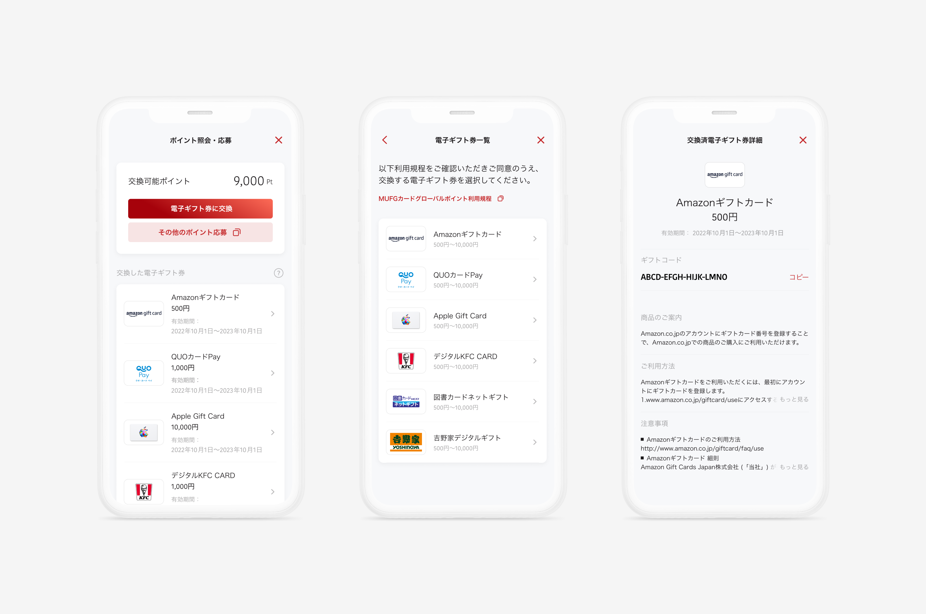 カード利用で貯まったポイントはいつものお店で使える様々な電子ギフト券に即時交換可能です。