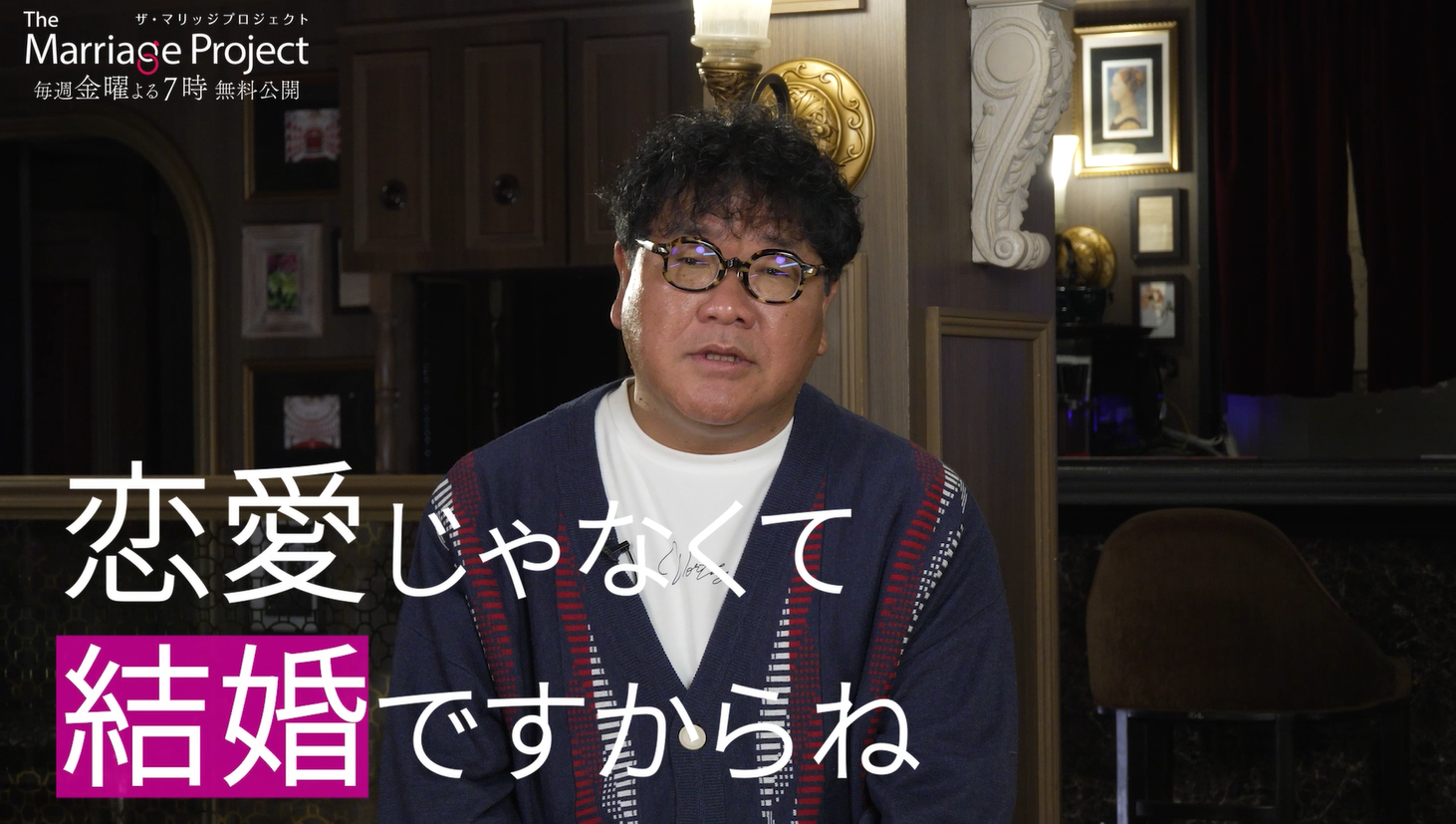 森香澄さんとカンニング竹山さんがMCを務め、一般公募で集まった男女7名の出会い、交際、そして運命のプロポーズまで、1年間の婚活を赤裸々に追いかけます。