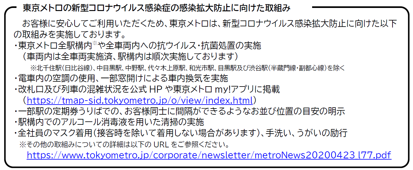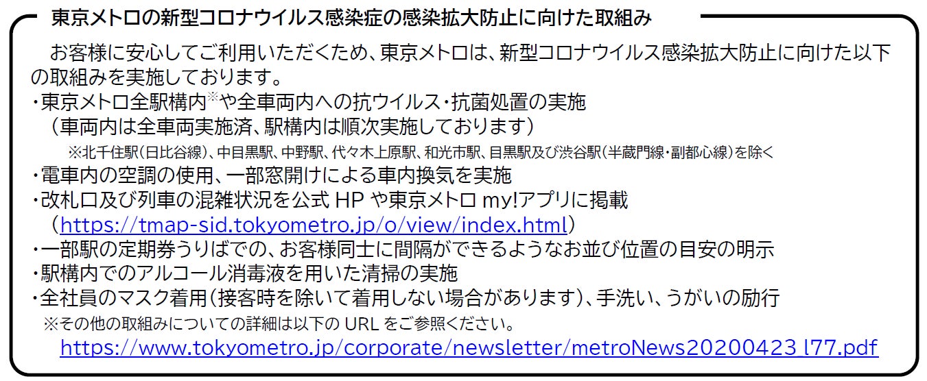 東京メトロお客様センター TEL 0120-104-106(年中無休9:00~17:00)