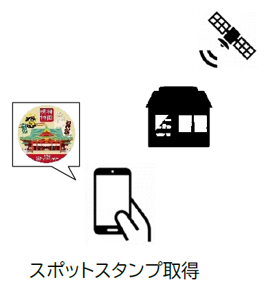 対象コースの3箇所スポットを巡りながら、施設または店舗付近でGPSの位置情報によりスポットデジタ ルスタンプを取得できます。