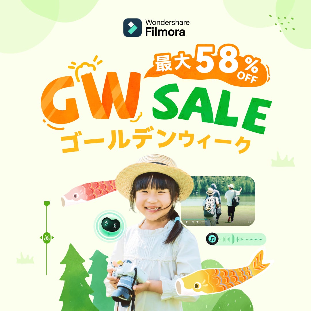 世界200以上の国と地域で利用されるソフトウェアを開発する、株式会社ワンダーシェアーソフトウェア(東京都港区、代表:呉太兵)の動画編集ソフトFilmoraがGWのお得なセールを実施中!
