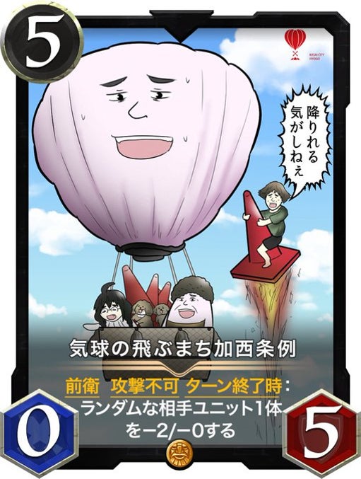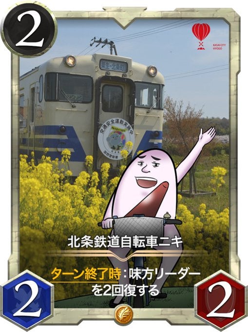 今回提供する返礼品は、ブロックチェーンゲーム「クリプトスペルズ」上で使えるNFTのカードです。寄付金額 3万円 の品が2種類各333枚ずつの合計666枚の品が提供される予定です。イラストは人気Web漫画家のやしろあずき先生による描き下ろしです。加西市を走る北条鉄道、気球の飛ぶまち加西のシンボルである気球がモチーフになっています。カードの能力はクリプトスペルズ公式Twitterにて公募を開始し、9月1日〜7日の期間中にクリプトスペルズユーザー様からいただいた案を採用いたしました。