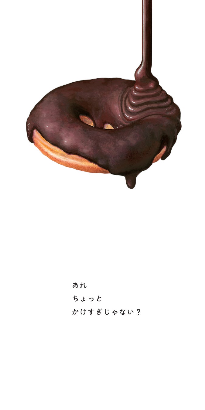 まるで手を伸ばせば触れられそうな、圧倒的な描写力によるシズル感たっぷりのチョコレートやドーナツ、アイスたち。
