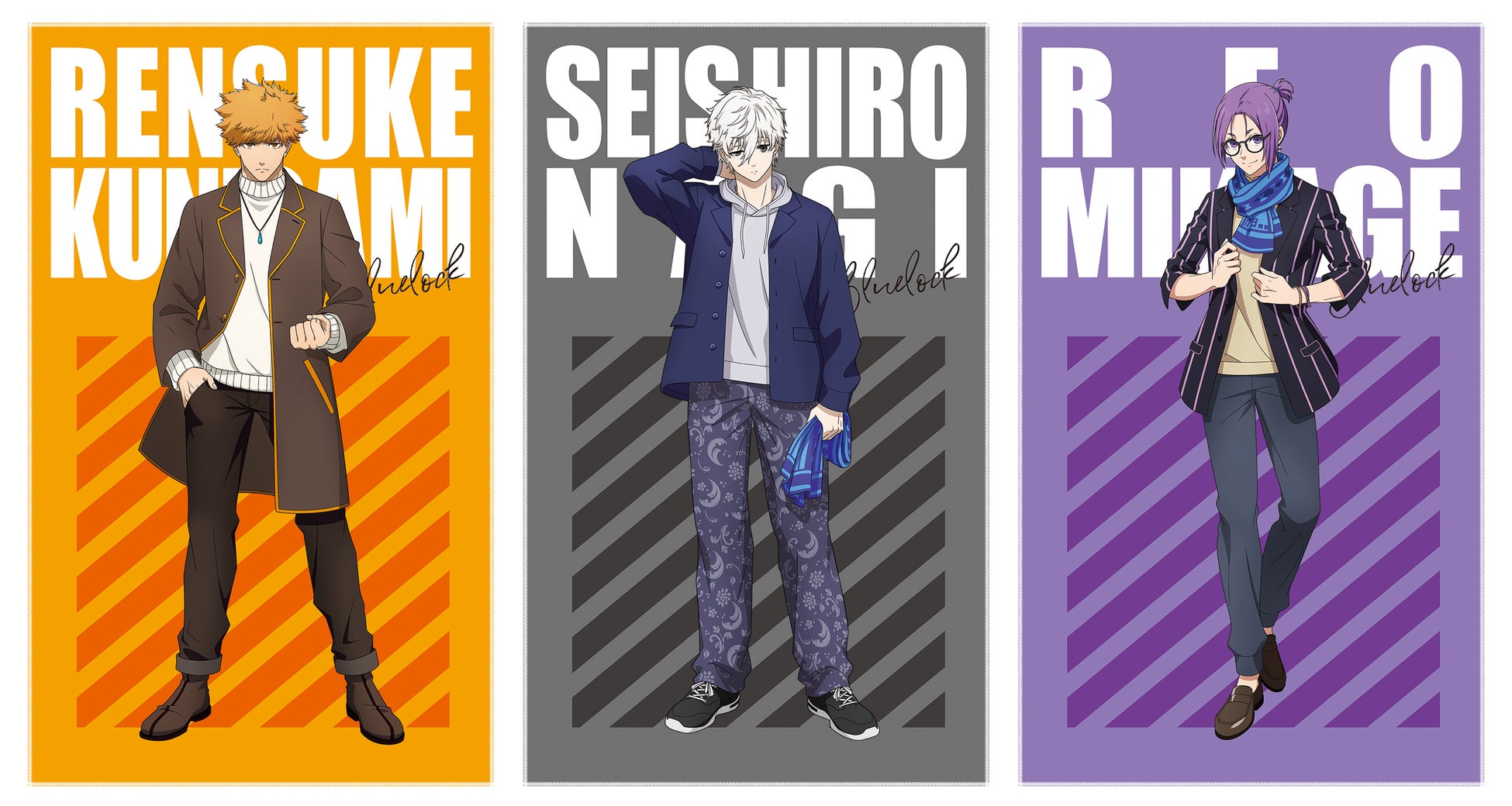 | (3)TVアニメ『ブルーロック』ビッグサイズビジュアルタオル ~ナムコキャンペーン~vol.1(全3種) 2月17日(金)登場予定 ・潔 世一(いさぎよいち) ・蜂楽 廻(ばちらめぐる) ・千切豹馬(ちぎりひょうま) サイズ:約50cm×約82cm |
