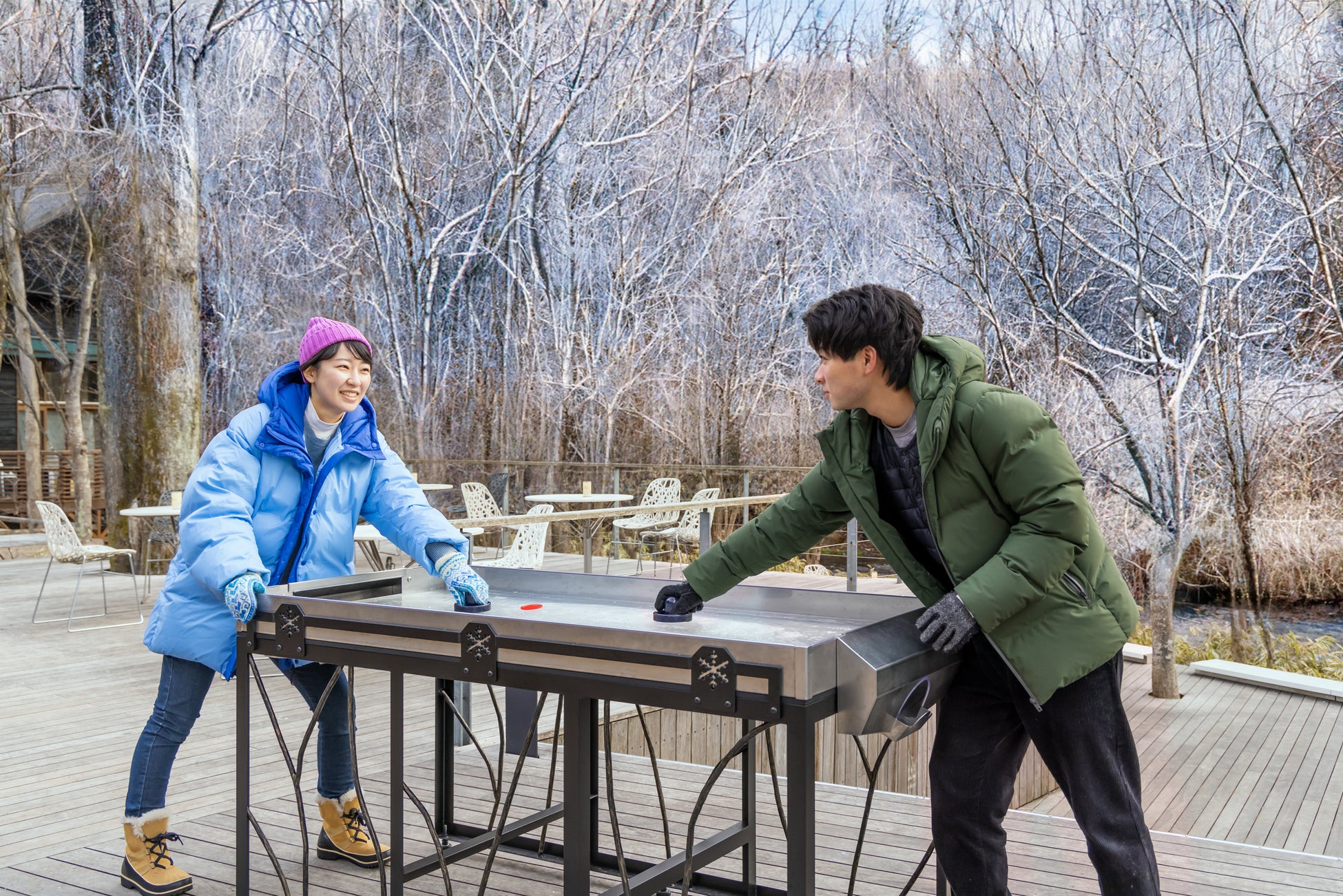 自然と文化を愛する人々が集う場所「軽井沢星野エリア(以下、星野エリア)」は、2025年1月25日〜2月16日に、「軽井沢フローズンフィールド」を開催します。「軽井沢フローズンフィールド」は軽井沢の寒さを楽しみながら、気軽に氷のゲームを体験できるイベントです。3年目になる今年は、「アイスボウリング」「アイステーブルサッカー」の2つのゲームを加えて進化します。週末には「フローズンフィールド ハルニレテラス杯」を開催。ハルニレテラスの店舗では、寒い冬だからこそおいしい、あたたかいドリンクやスイーツも充実しています。