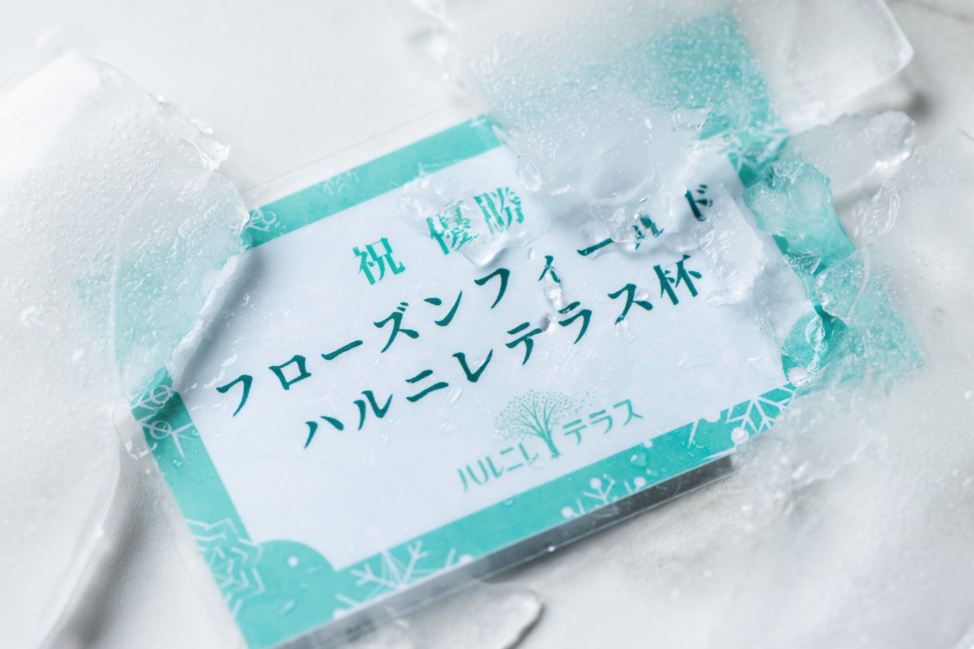 期間中の週末には、「フローズンフィールド ハルニレテラス杯」を開催します。3つのゲームを行う個人対抗のトーナメント制で、優勝者には「氷でできたハルニレテラス杯特別券」とオリジナルクッキーを進呈します。氷に包まれた特別券をアイスピックで割り出して、指定の店舗でドリンクやスイーツと交換することができます。