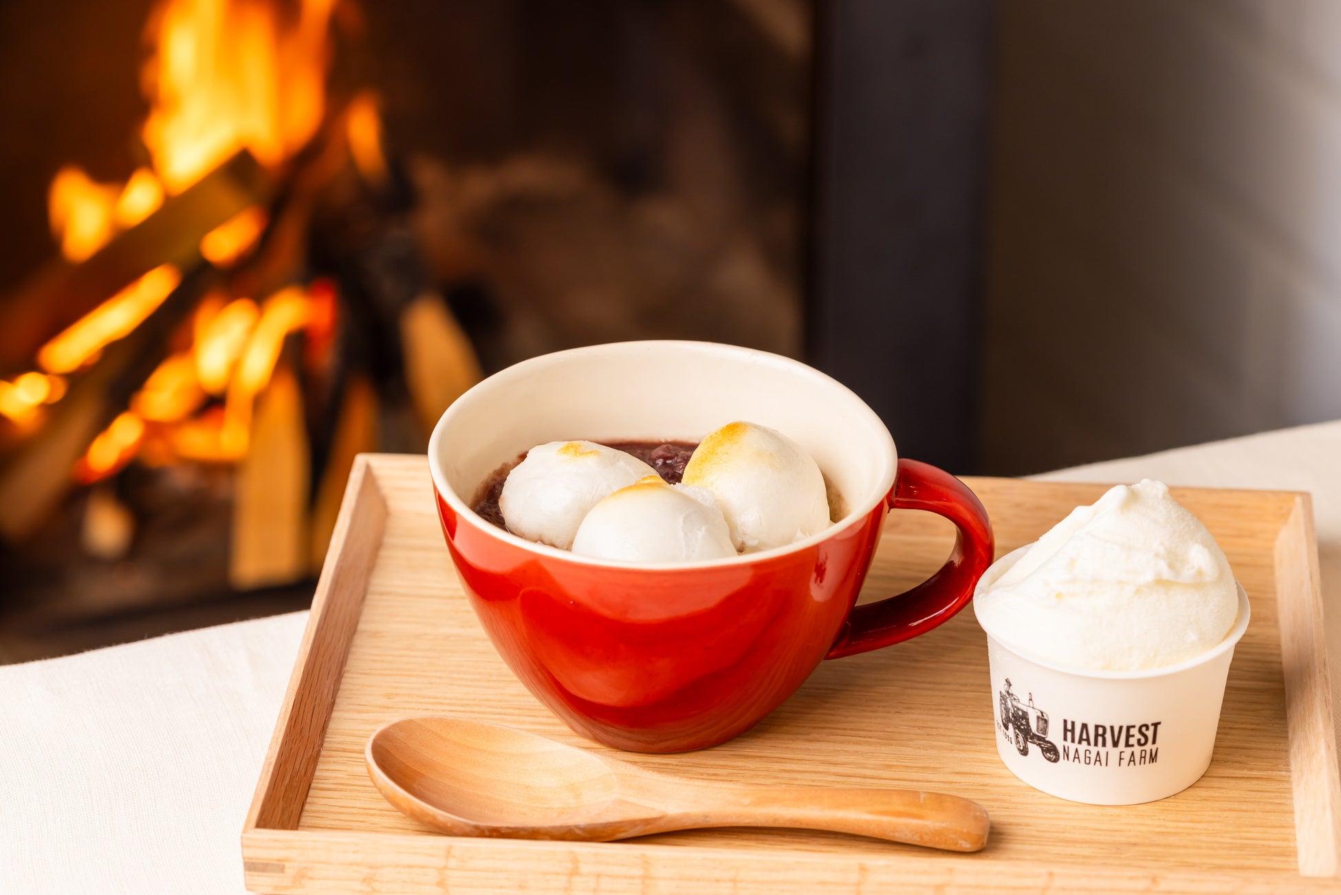 ハルニレテラスの各店舗では、定番のホットチョコレートやドルチェピッツァ、冬季限定のぜんざいやホットワインなど、寒い冬だからこそおいしい、あたたかいドリンクやスイーツが揃います。寒い屋外で身体を動かしたあとには、ドリンクやスイーツでほっと一息つくことができます。