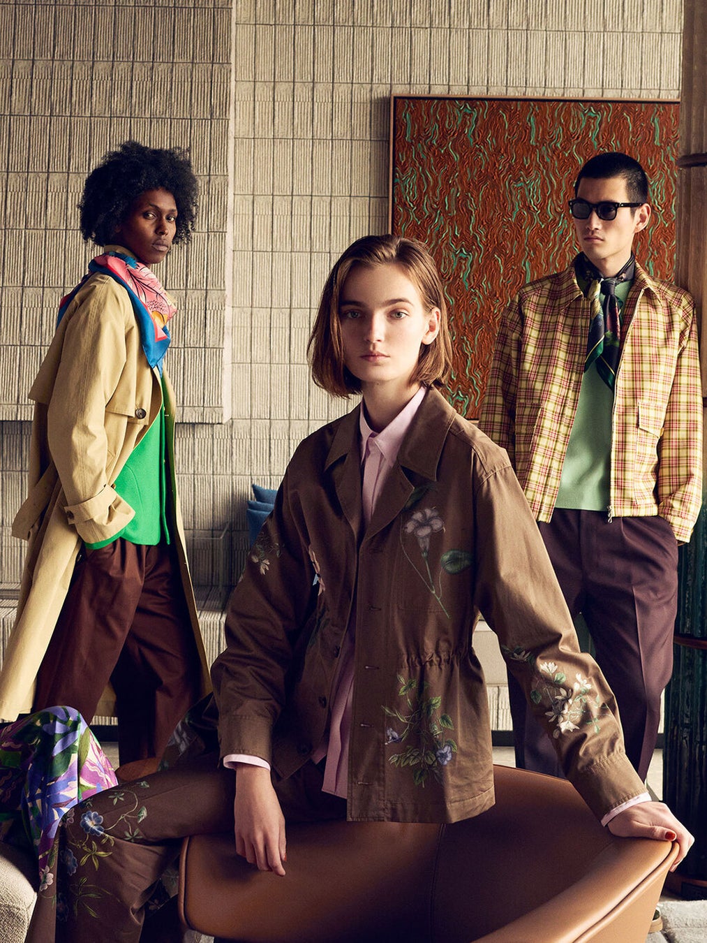豊富なカラーパレットや鮮やかなプリントアイテム、コンテンポラリーなシルエットバランスが特徴。