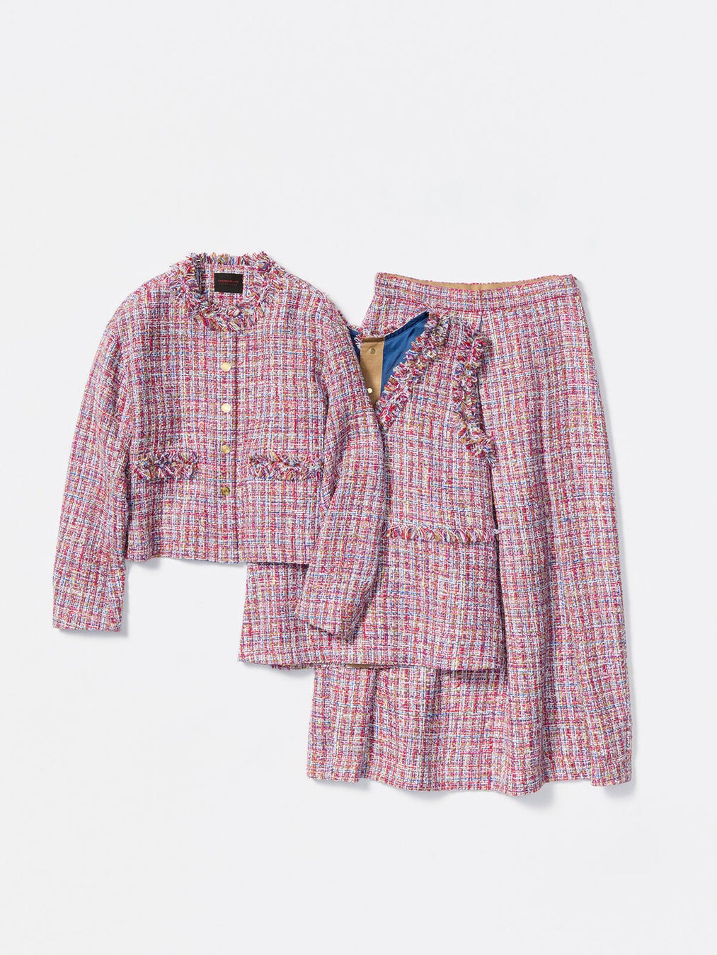 フランスの老舗〈JULES TOURNIER(ジュール・トゥルニエ)〉社が織り上げた生地を使用した特別感のあるアイテム。鮮やかな色彩と繊細なフリンジが、装いに華やぎとエレガンスを添えます。