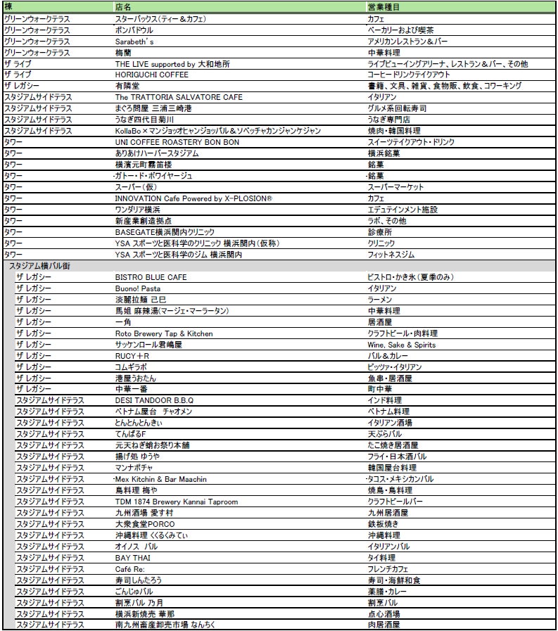 【別紙1】BASEGATE横浜関内 入居テナント一覧