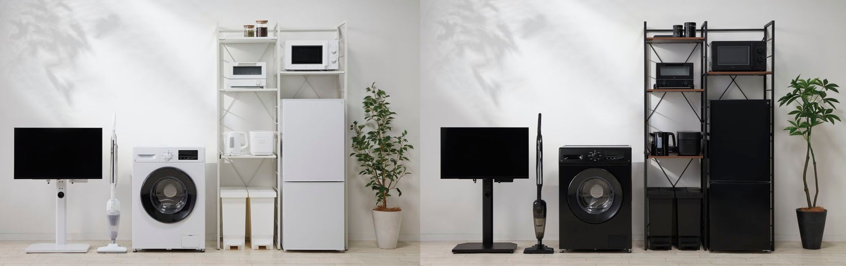 ニトリの家電は、⾃分の好みやお部屋のテイストに合わせて、⽩と黒から⾊を選んでご購⼊いただけます。デザインや形、⾊味が統⼀されており、セットで購⼊すればお部屋に統⼀感がでるのも嬉しいところです。