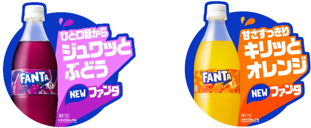 「ファンタ グレープ」は、口に入れた瞬間からグレープの香りと味がジュワっと広がり、さらにグレープ風味の満足感が感じられる味わいに。「ファンタ オレンジ」は、オレンジの風味がしっかりと感じられ、よりキリっとした軽やかな後味をお楽しみいただけます。