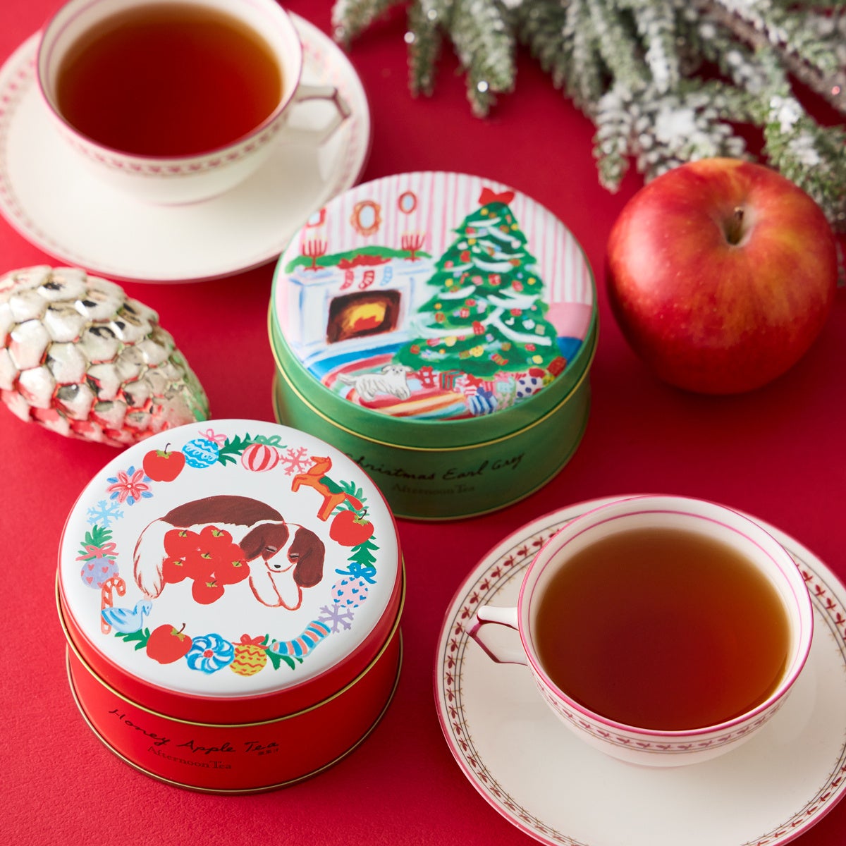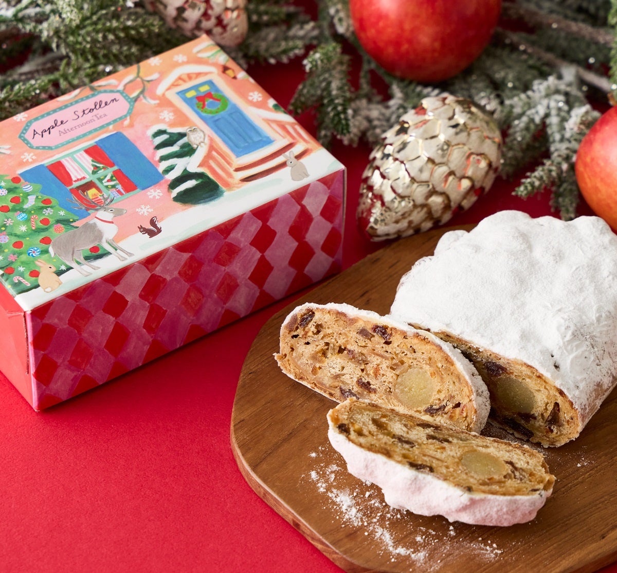 今年は、新作の紅茶「ハニーアップル」とクリスマス限定ブレンド「クリスマスアールグレイ」にカレンダーティー限定や定番のお茶を加えた個性豊かな全24種を、大きな絵本のようなパッケージにカレンダー仕立てで詰め合わせました。しっとり焼き上げた「りんごのシュトーレン」とともに、クリスマスまでの一日一日を彩ります。