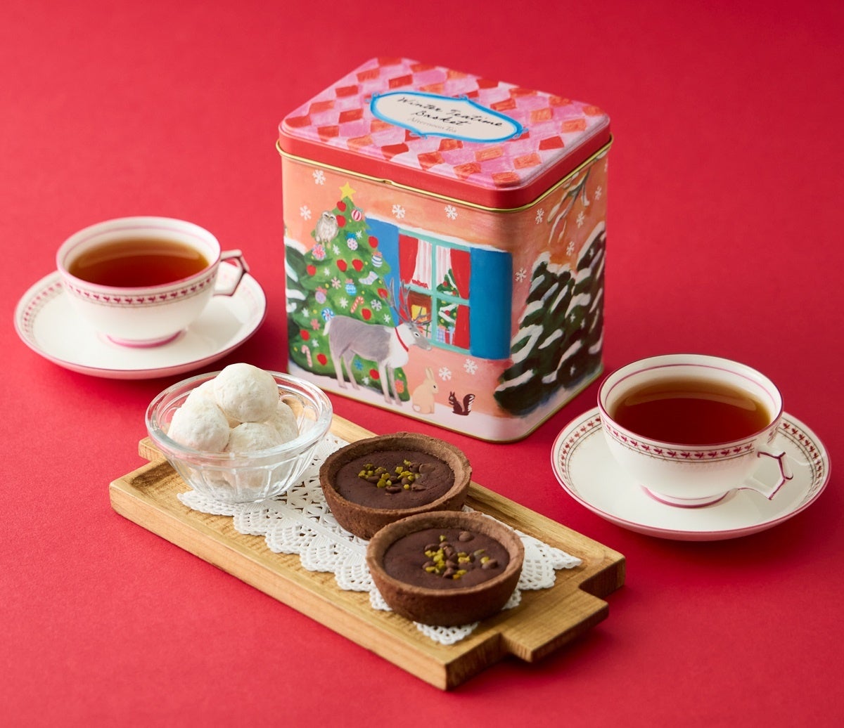今年は、ティールームと同じスタイルのバスケットに、紅茶と焼き菓子を詰め合わせた「クリスマスアフタヌーンティーセット」や、栗の甘露煮をショコラ生地に入れて焼き上げた「ショコラマロンケーキ」など新作のクリスマスギフトも登場します。
