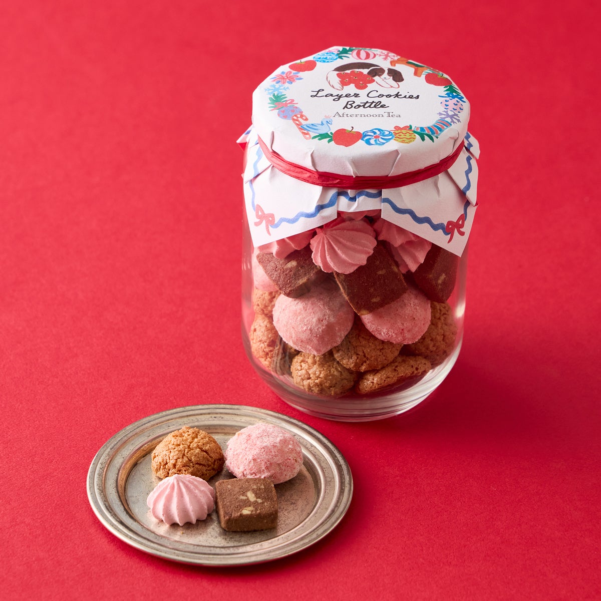 ガラスボトルに4種類のクッキーやメレンゲを層にした、見た目もかわいいクリスマスの詰め合わせ菓子です。