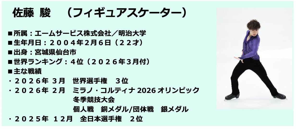 仙台市出身のフィギュアスケーター“佐藤駿選手”は、ミラノ・コルティナ2026冬季オリンピックのフィギュアスケート男子シングルで銅メダル・団体銀メダルを獲得するなど、多彩な4回転ジャンプを武器に世界で活躍する選手です。