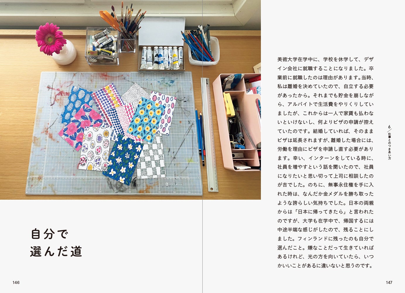 フィンランド在住のテキスタイルデザイナー・イラストレーター。1児の母。津田塾大学を卒業後、沖縄で英語教員として働く。2007年フィンランドに移住し、アアルト大学でテキスタイルデザインを学び、マリメッコ社でテクニカルデザイナーとして勤務。2014年より独立し、国内外の企業にデザインを提供する他、CMの衣装、宮古島のHotel Locusのテキスタイルデザインを担当。森のテキスタイルシリーズなど、暮らしを楽しくするオリジナルプロダクトをプロデュース。『北欧フィンランド配色ブック』(玄光社)『フィンランドで気づいた小さな幸せ365日』(パイインターナショナル)など、フィンランドのデザインや暮らしにまつわる本も執筆している。