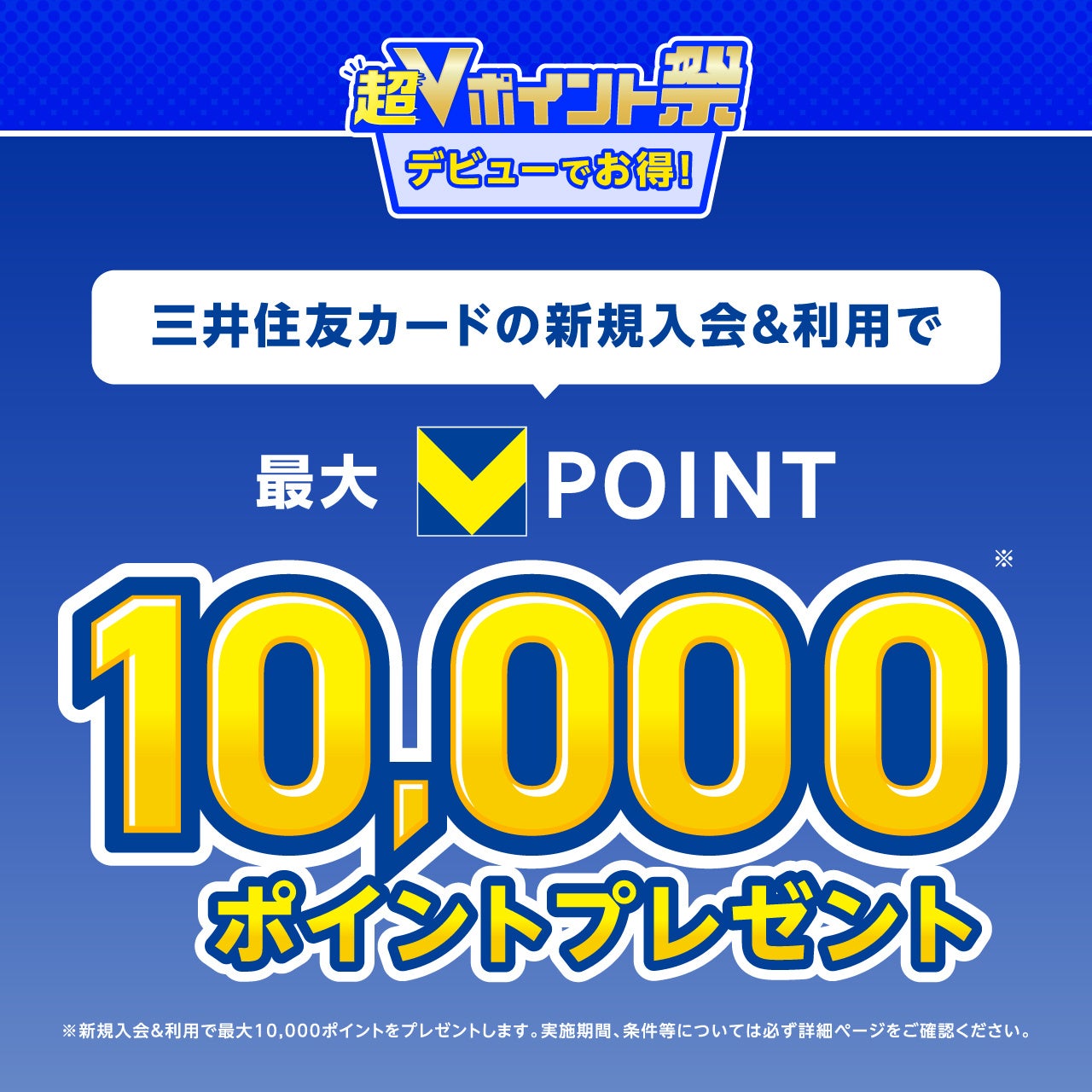 キャンペーン期間中に三井住友カードに入会するとVポイントが最大3,000ptもらえ、さらに三井住友カードでお支払いいただくと最大7,000ptがもらえます。