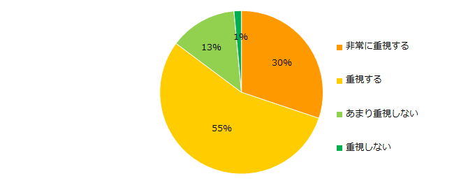 「重視する」(非常に重視する:30%、重視する:55%)と回答。続いて、重視すると回答した方に理想の