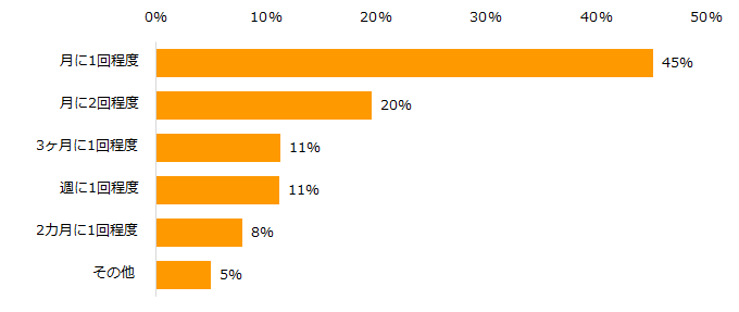 フォロー頻度を伺ったところ、「月に1回程度」が45%と最多でした。希望する対応方法は「メッセージアプ