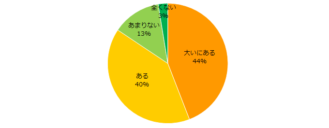 どうかに関係があると思いますか?」と伺うと、84%が「ある」(大いにある:44%、ある:40%)と回答。