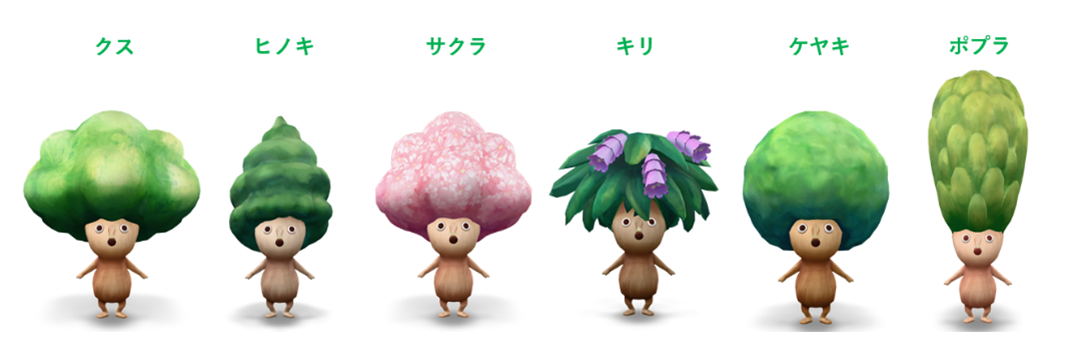 「もり森そだつ」は、対象の「い・ろ・は・す」ラベルにある二次元コードをスマートフォンで読み込むだけで気軽に参加できます。様々なキャラクターの中から選んで、日々のお世話をすることで、「もりちゃん」は成長し、変化していきます。クスやヒノキなどの多くの木をモチーフにしたキャラクターや、購入した「い・ろ・は・す」の水源地※にちなんだキャラクターも登場するため、自分の購入した「い・ろ・は・す」の水源地に想いを馳せながら育成ゲームを楽しむことができます。また、「もりちゃん」を育てて貯まったポイントで、自然の中の体験やサスティナグッズなどへの応募が可能です。