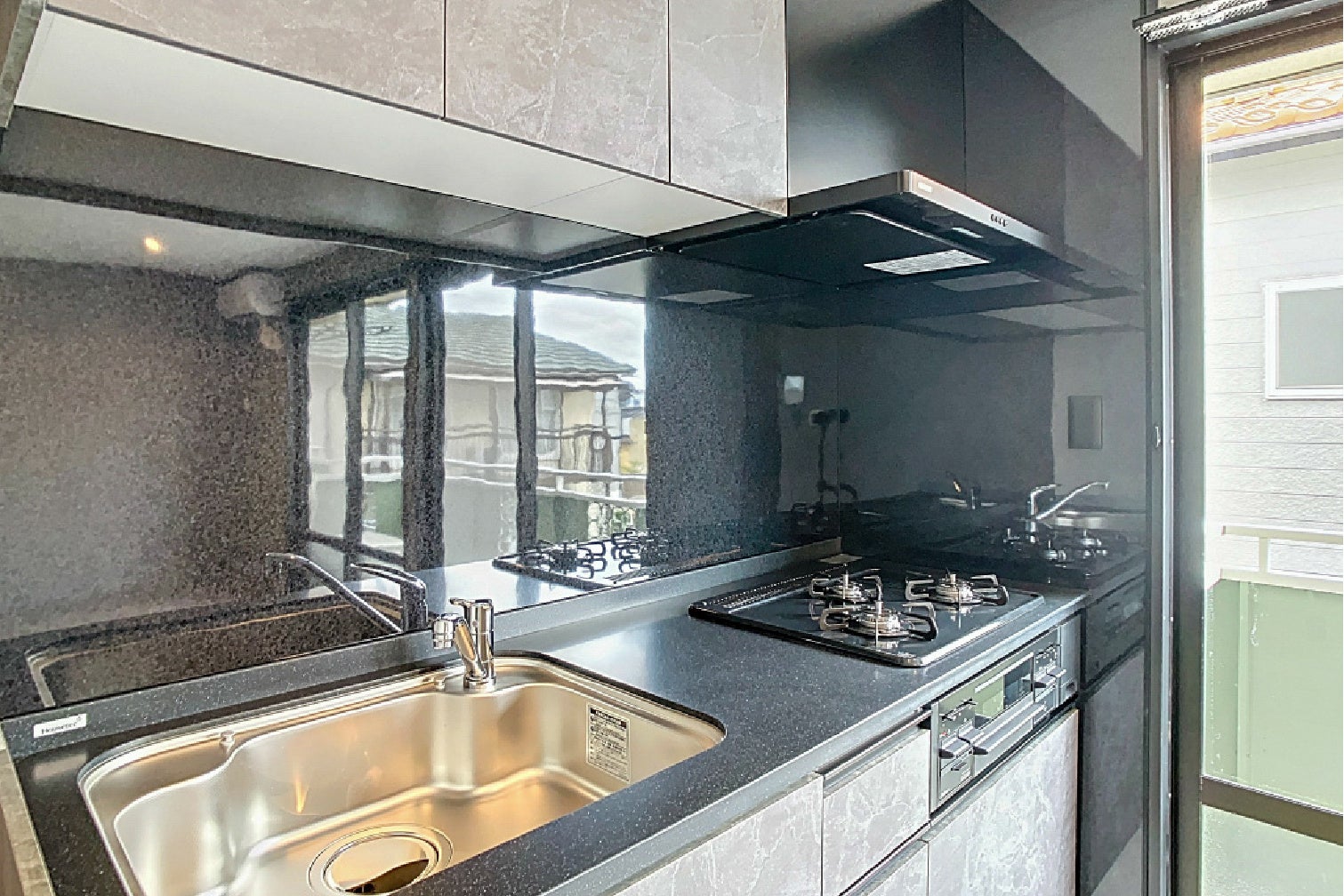 ・高級感を醸すブラックの人工大理石キッチン