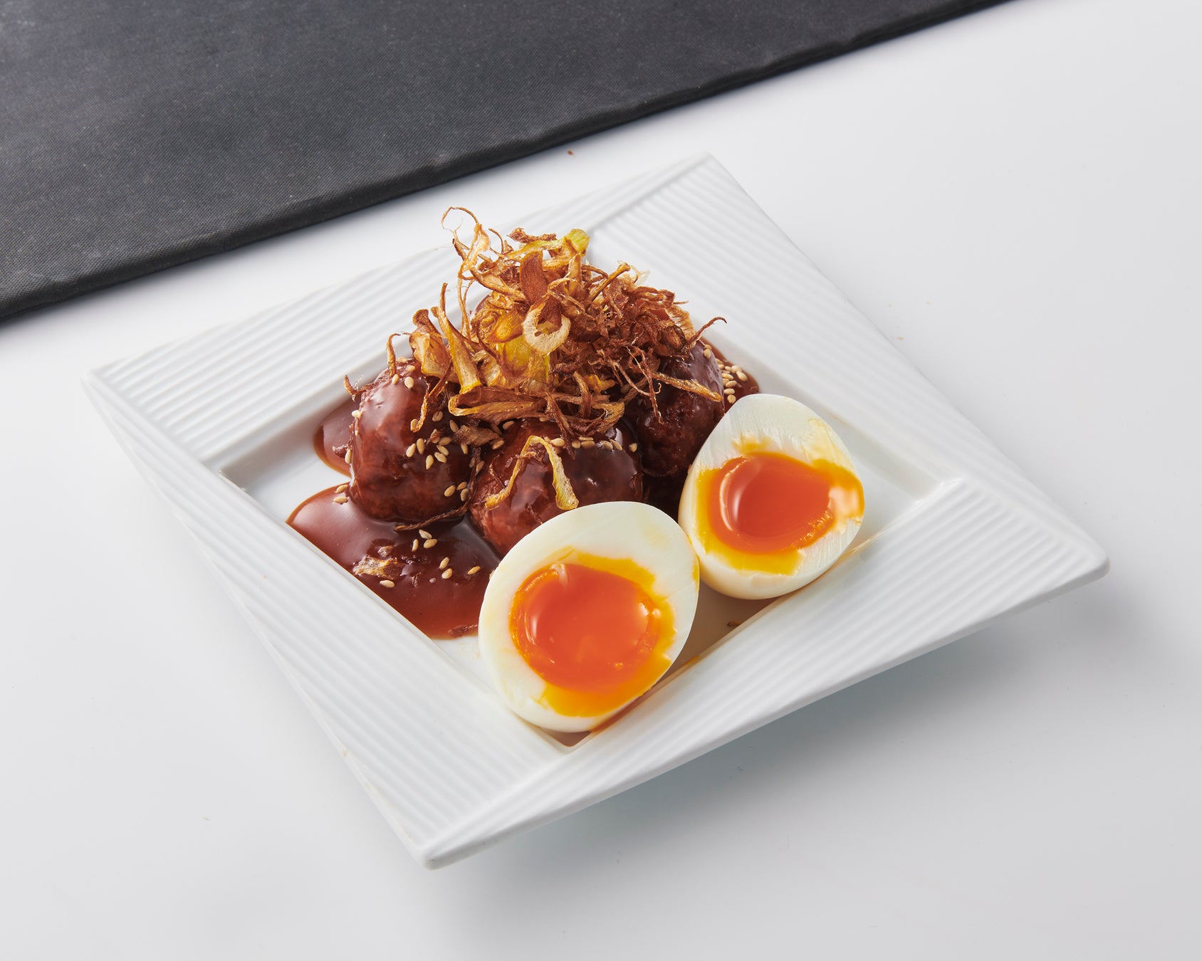 ■メニュー名:バルサミコ香る 大豆肉団子~半熟卵添え~548円(税込)