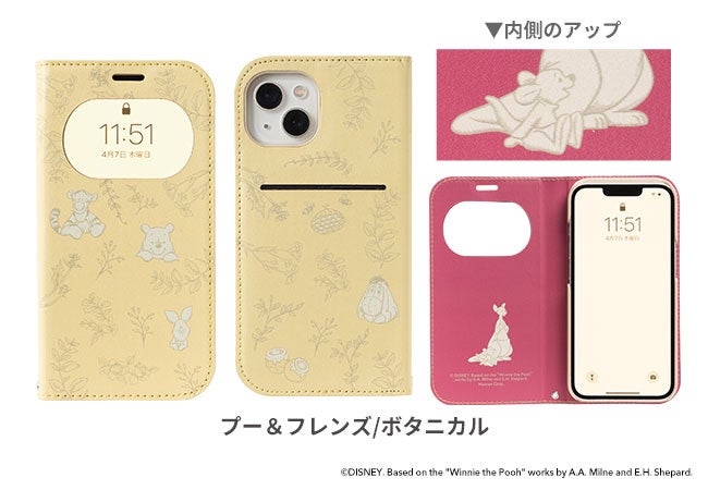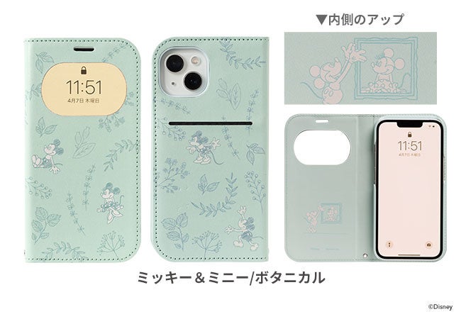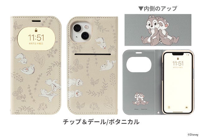 ナチュラルテイストのキャラクターたちが描かれたちょっと大人なディズニーデザインの手帳型ケースは、くすんだ色合いとボタニカルテイストな柄の中に、手書きテイストでミッキーマウスとミニーマウスが可愛く描かれた「ミッキー&ミニー/ボタニカル」、チップとデールが仲良く寄り添ったりはしゃぎ回る「チップ&デール/ボタニカル」、こちらを覗き込む「くまのプーさん」と仲間達が可愛い「プー&フレンズ/ボタニカル」の全3種のラインナップ。
