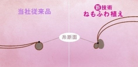 『ねもふわ植え』の開発に合わせて、複数の糸で編まれた「マルチフィラメント繊維」にこだわった、当社新発想のオリジナルネットも新開発しました。毛材をしっかりと支えて立ち上げます。