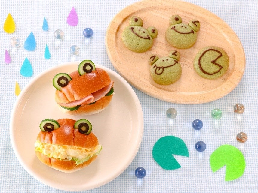 カエルをモチーフにしたクッキーとサンドイッチを作ります。クッキーはホウレン草パウダーを使った緑色の生地から手作り、サンドイッチはみんなが大好きなたまごとハムチーズの2種類です。雨の季節にもぴったりな楽しいレッスンです。