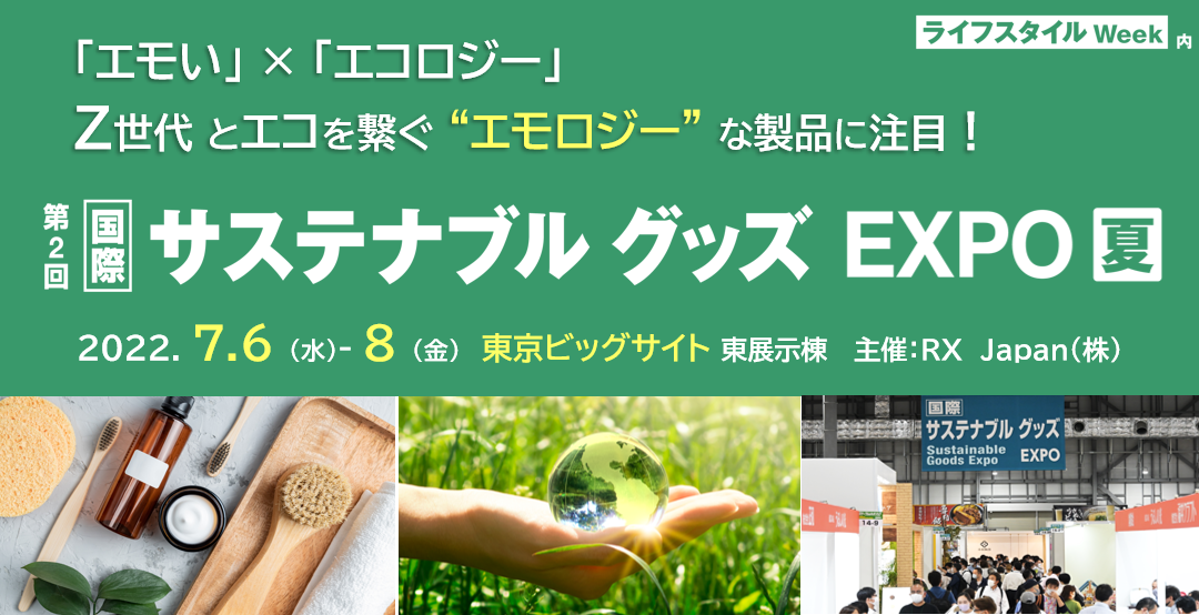 RX Japan(株)は、7月6日(水)~8日(金)の3日間、東京ビッグサイトにて「第2回 サステナブルグッズEXPO 夏(ライフスタイルWeek内) 」を開催します。