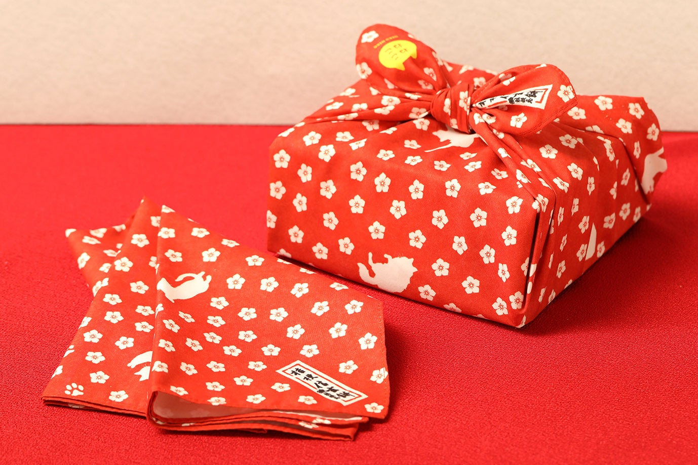 概 要:コラボレーション限定のオリジナル風呂敷。桔梗柄の中にねこのシルエットや肉球をデザインし、桔梗信玄餅とねこねこらしさ満載の風呂敷に仕上げました。