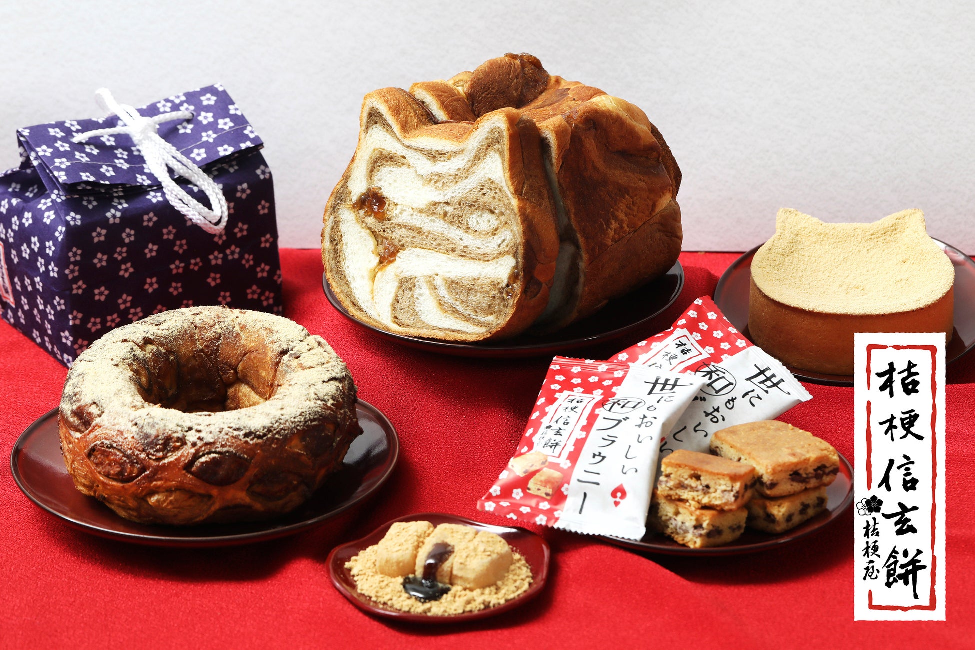 「ハートブレッドアンティーク」からは、シリーズ累計出荷数約1,800万個※1を誇る大人気商品『世にもおいしいチョコブラウニー』とコラボレーションした『世にもおいしい和ブラウニー 桔梗信玄餅』と、看板商品『マジカルチョコリング』とコラボレーションした『マジカル桔梗信玄餅リング』、「ねこねこ」からは、SNSで人気の『ねこねこ食パン』や『ねこねこチーズケーキ』とコラボレーションした『ねこねこ食パン 桔梗信玄餅』『ねこねこチーズケーキ 桔梗信玄餅』をご用意いたしました。