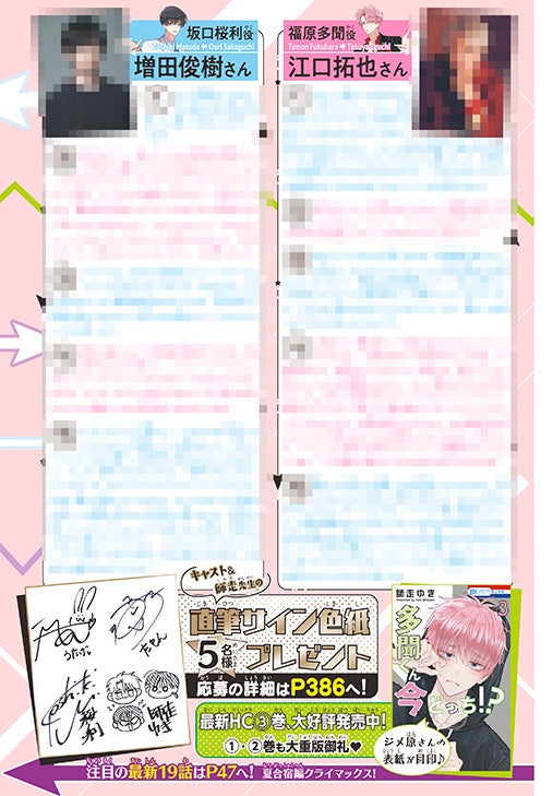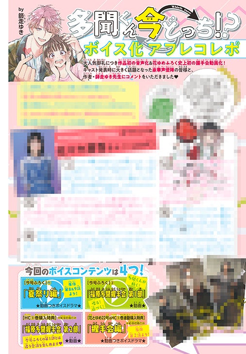 また、『花とゆめ』22号と最新HC「多聞くん今どっち!?」3巻をどちらも購入していただくと「動画つきボイスドラマ 握手会編」が見られます!