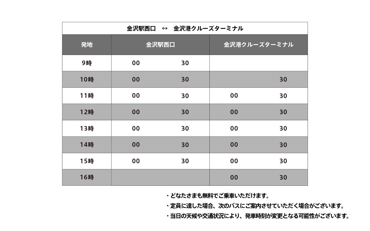 ・シャトルバス:金沢駅と会場を往復する無料シャトルバスを運行します。