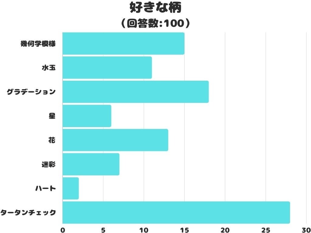 好きな柄をアンケートにて調査したところ、1位は「タータンチェック」でした。