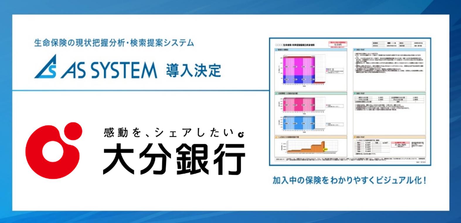 “保険×IT×AI”生命保険の現状把握分析・検索提案システム『ASシステム』 大分銀行の利用開始が決定