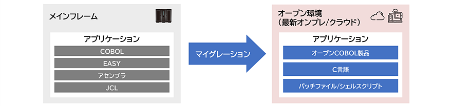 富士通COBOLのデータベースとオンラインインターフェース部分を、オープン環境でのCOBOL製品へ変換します。