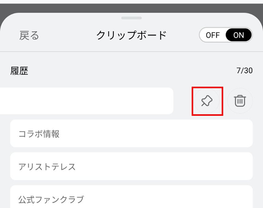 コピーしたテキストを自動で最大30件保存し、過去の履歴からワンタップで即貼り付けが可能です。これにより、頻繁に使用するフレーズや文章を素早く呼び出すことができます。