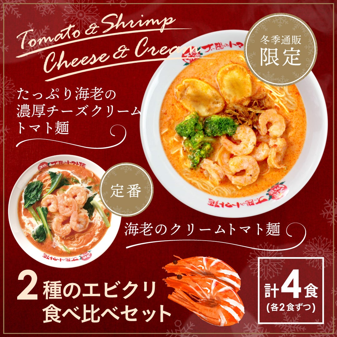 たっぷり海老の濃厚チーズクリームトマト麺×定番 海老クリームトマト麺 食べ比べ 4食セット